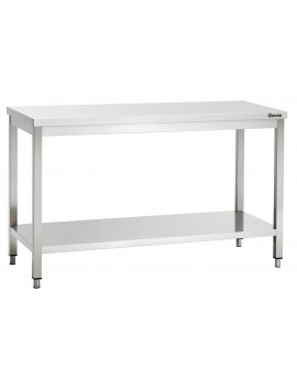 Sans dosseret Acier inoxydable, finition Skotch-Brite Pieds carrés 40 x 40 mm Avec sous étagère Hydrophobe et insonorisé plateau renforcé Prépercé pour le montage d‘un dosseret Livré en kit, montage facile - dans un emballage plat et peu encombrant Dimensions : L 1200 x P 700 x H 850-900 mm